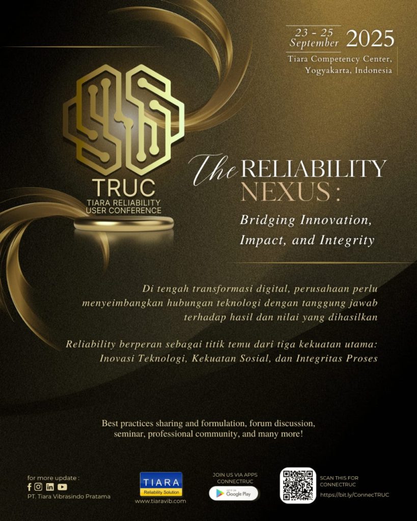 TRUC atau Tiara Reliability User Conference bertujuan untuk menjadi pusat keunggulan dan informasi mengenai proses bisnis, kompetensi dan teknologi untuk perkembangan reliability engineering dan condition monitoring di Indonesia melalui best practice sharing. Tema TRUC ke-18 kali ini adalah The Reliability Nexus: Bridging Innovation, Impact, and Integrity yang menggambarkan reliability sebagai titik temu (nexus) dari tiga kekuatan utama: inovasi teknologi, dampak sosial dan bisnis, serta integritas proses. Di era transformasi digital yang semakin pesat, organisasi diharapkan dapat memastikan bahwa setiap inovasi yang diimplementasikan mampu menghasilkan nilai nyata. Pelaksanaan TRUC 2025 selama 3 hari akan diadakan kembali di Tiara Competency Center, Yogyakarta pada tanggal 23 – 25 September 2025.